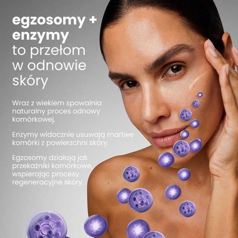 Zaawansowany produkt regenerujący do codziennego stosowania bez spłukiwania. Formuła z egzosomami nowej generacji oraz fitoaktywnymi enzymami, odbudowuje skórę przyspieszając odnowę komórkową i wspiera naturalne mechanizmy naprawcze naskórka, osłabione przez procesy starzenia.