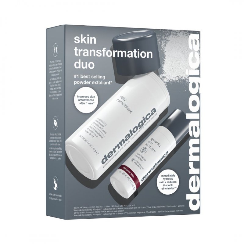 Duet bestsellerowych produktów Dermalogica, który zapewnia skórze wygładzenie, rozjaśnienie oraz ochronę przed promieniowaniem UV. Zestaw Skin Transformation Duo zawiera: Daily Microfoliant 40 g oraz Dynamic Skin Recovery SPF 50 15 ml.